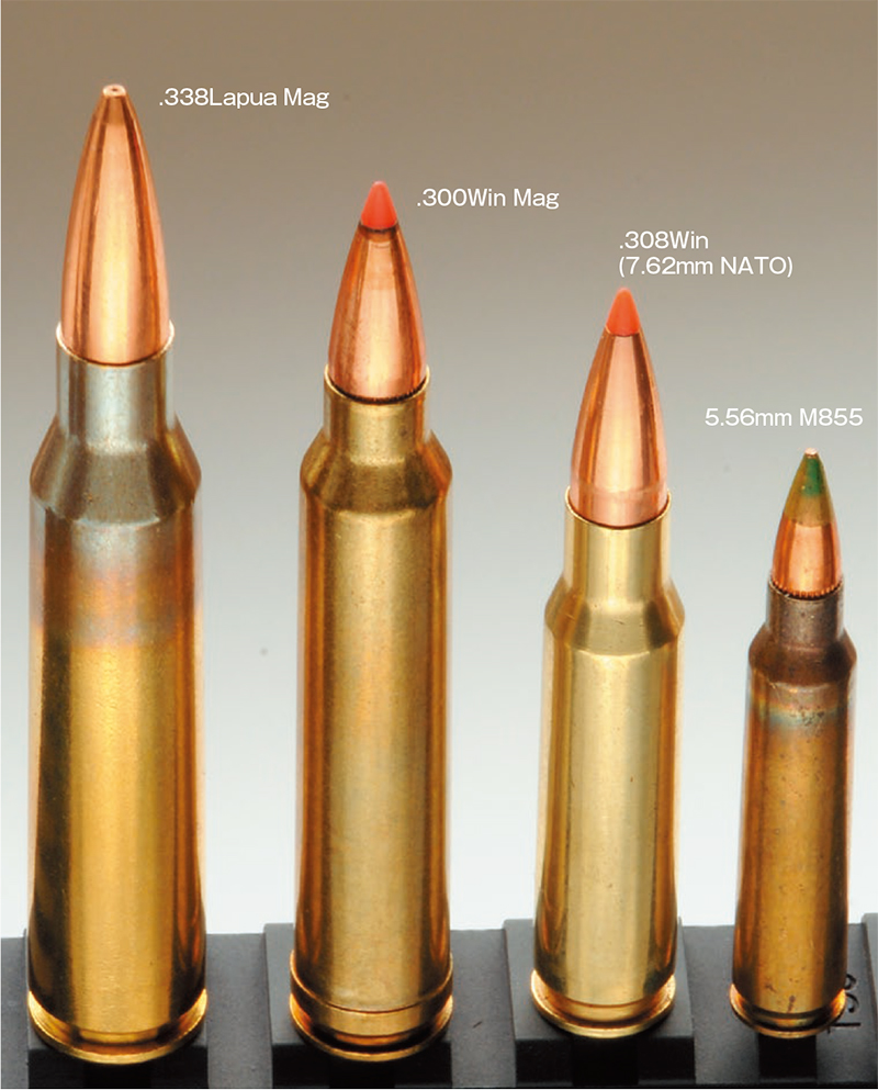 7.62mmNATO(7.62mm×51)スナイパーライフルの最大有効射程は600m前後と言われている。過去のリポートでも触れたが、最大射程の事ではない。現在、米軍のみならず友好国軍のスナイパーライフル口径の主流は7.62mmNATOとなっている。かつて7. 62mm×51の命中精度(グルーピング)は30-06に勝ると言われたものだが、今日、アキュラシーに詳しいシューターでこれを信ずる者は少ない。30-06の欠点は7.62mmNATOに比較、カートリッジの寸法が長い事だ。長さ/キャパの増加による有効射程延長が10%前後程度じゃ不十分、長い分、銃の重量増加とかサイズとかデザインする上でのデメリットもある。7.62mmNATOとは別に特殊用途用として7.62mmNATOを性能で大きく上回る新たなカートリッジの模索は進められてきた。米国は射撃王国、この手のロングレンジカートリッジは市場にゴロゴロしている。わざわざ開発する必要性もなく?適当と思われるものをピックアップするだけで事足りる。口径30前後に絞るなら7mmRem-Mag、30-338、300Win Mag、300Weatherby Mag、338WinMagなどが上げられる。既に述べたように軍用としてなら命中精度、威力だけでなくカートリッジ形状からくる連発機構の対応性なども考慮しなければならない。となると300Weatherby Magは圏外だ。そして選ばれたのが300Win Magだった。