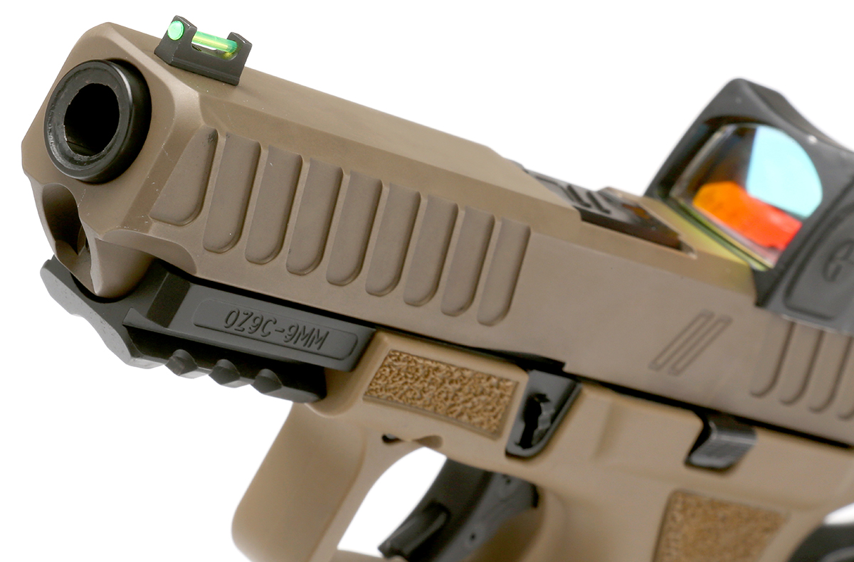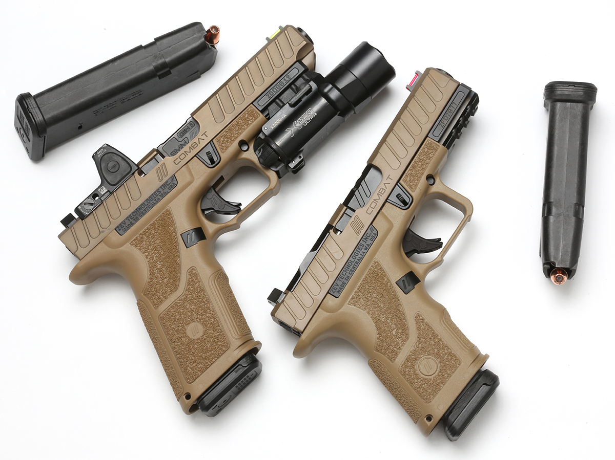 OZ9は2023年の改良を加えられて現在のV2となり、複数のバリエーションをカタログに揃えている。OZ9シリーズに共通するのは、グロックにない特徴であるモジュラーフレームだ。現在ではSIG SAUER P320によって一般的となったモジュラーフレームデザインであるが、ZEVの場合もユーザーが簡単にグリップモジュールと銃フレーム本体を分割する事が出来、異なるサイズとデザインを持つグリップモジュールと自在に組み合わせることが可能な自由度が得られる。