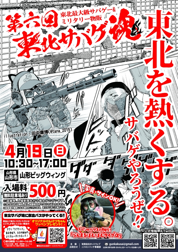 追記(令和8年4月10日):爆裂祭から1週間後の4月19日(日)、ニトロンパッチ様(@gunkakusai)主催の東北サバゲ魂へブース出展をさせていただきます!爆裂祭でお会いできないお客様、山形県山形市m山形ビッグウィングへの参りますので、何卒よろしくお願い申し上げます。