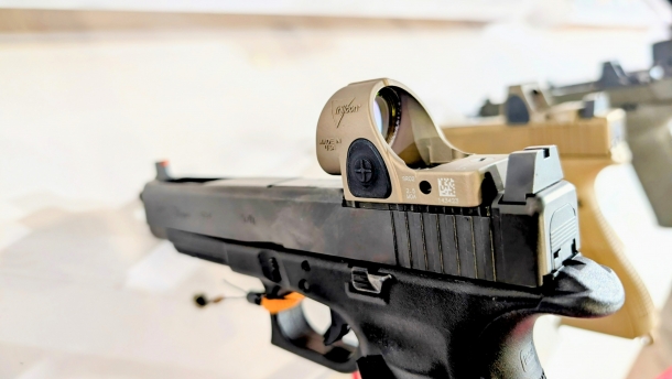そして、多くプロシューターに人気のTrijicon SROの新色Coyote Brownに注目が集まっておりました。