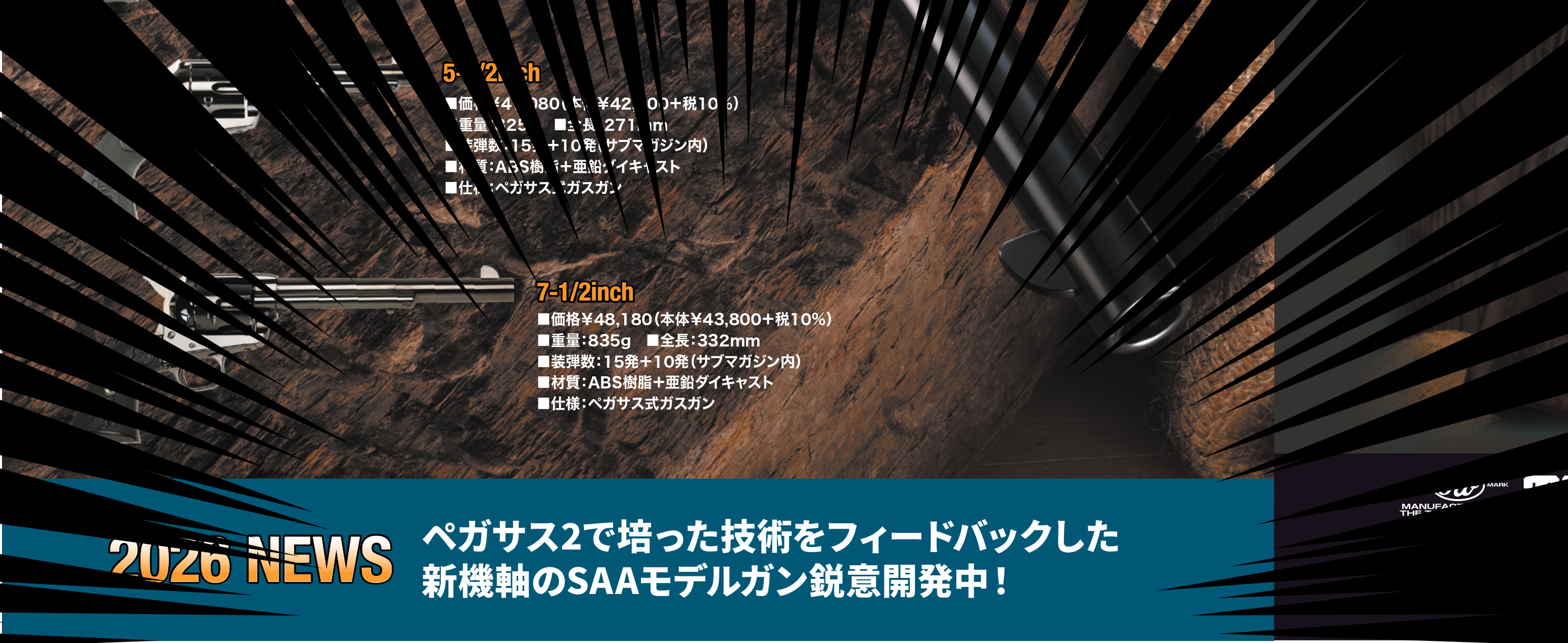 高性能でご好評いただいているペガサス2 SAA ガスガンに、このたびステンレスフィニッシュモデルが加わります。