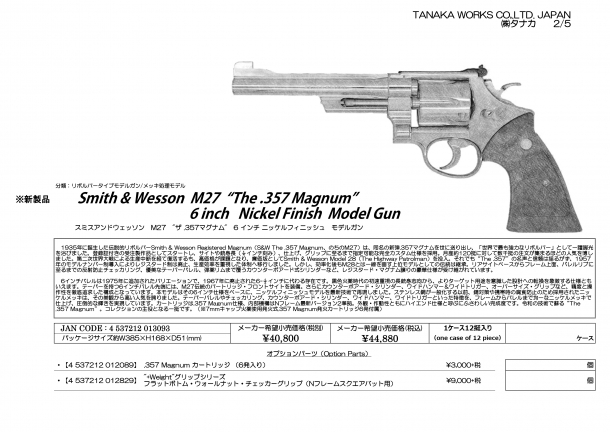 順当に一月一月バレル長が伸び、今月はニッケルフィニッシュの6インチモデルの登場です。