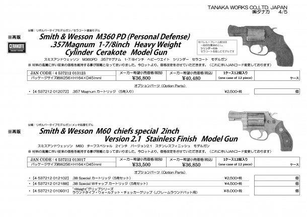 現行のS&W Jマグナムフレーム、チーフ・スペシャル・エアライト系のひとつが再販です。