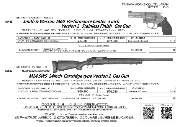 長物では、久々にM24が再販となります。実に4年ぶりの再販です。