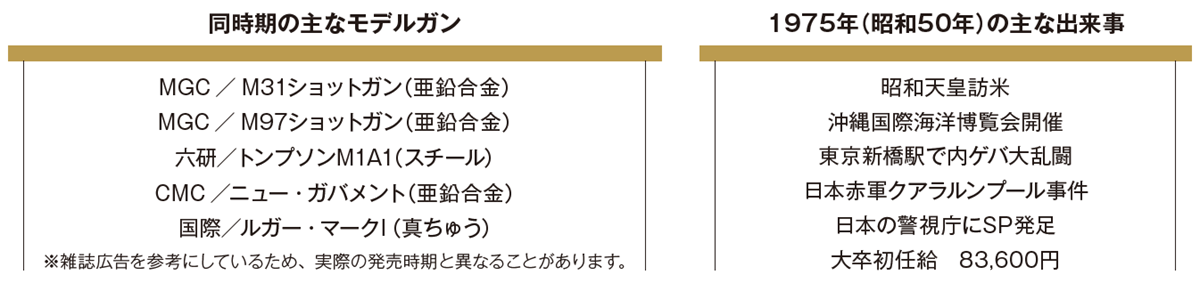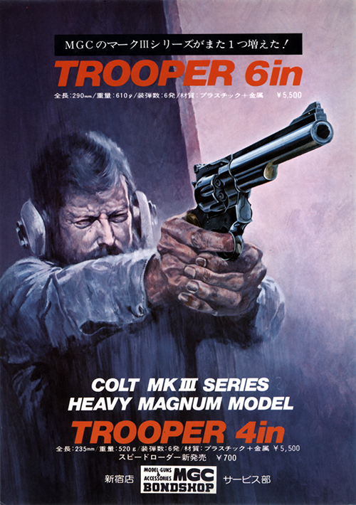 実銃のトルーパー/ローマン(マークⅢ)は1969年に発売された。MGCがこのモデルガンを発売したのはそれから6年しか経っていない1975年のことだ。当時のモデルガンは最新型ではなく、第二次世界大戦時のものなど、クラシックな名銃が作られることが多かったので、こんなに新しいモデルが作られるのは珍しいことだった。ボクを含めマークⅢを知らない人も多かったはず。