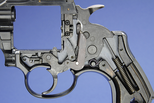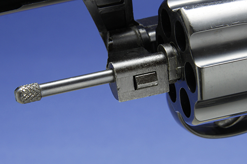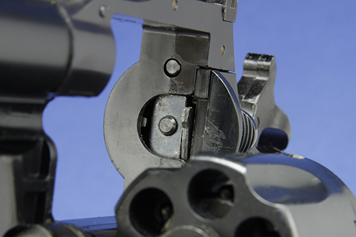 実銃のマークⅢはそれまでのコルト製品と違って、すり合わせのような作業をしなくても確実な作動が可能で、コストダウンが図れる銃として設計された。コイルスプリングの多用、フローティングファイアリングピン、トランスファーバー(セフティコネクター)の採用などは、まさにモデルガンにピッタリだったという。しかも、ダブルアクションとシングルアクションともにハンマーのストローク(回転角)が大きかった。小林さんは実銃を手にし、作動させてみてすぐにこれだと思ったそうだ。これならシリンダーの回転不良が起きにくく、不発も起きにくい。