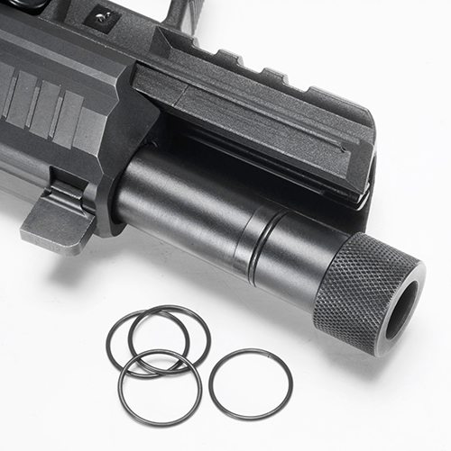それに続いて、西ドイツ軍をはじめ多くの国が選定したアサルトライフルG3や、それをSMG(サブマシンガン)化して高い評価を得たMP5で採用したローラーディレイドブローバック方式をハンドガンに組み込んだP9を設計。さらにDA(ダブルアクション)を追加したP9Sへと発展させ、これのサプレッサー付きモデルがNAVY SEALSにも採用された。