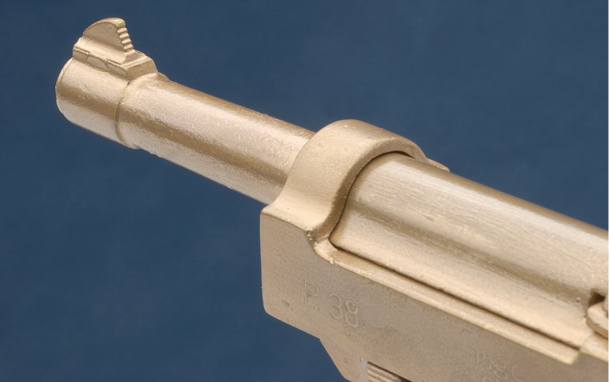 ※拳銃型の金属製モデルガンは、1971年の第一次モデルガン法規制(改正銃刀法)以降に販売されためっきモデルであっても、経年変化等によって金色が取れると銀色と判断されて規制の対象となることがあります。その場合は黄色や白色、または金色の塗料を塗るなどの処置が必要です。