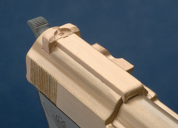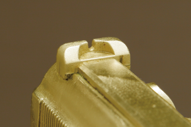 参考にされたのは、当時MGCモデルガンの海外販売を手がけていたアメリカのRMI社の社長が持っていたP38。そのためオリジナルのP38にはないリアサイト前のねじも、そのまま再現された。設計を手がけた小林太三(こばやしたぞう)さんによると、当時は実銃がそうなっていればそういうものだと信じて、個人がカスタム化した可能性などは考えなかったという。