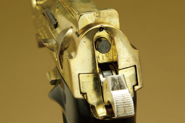 ※拳銃型の金属製モデルガンは、1971年の第一次モデルガン法規制(改正銃刀法)以降に販売されためっきモデルであっても、経年変化等によって金色が取れると銀色と判断されて規制の対象となることがあります。その場合は黄色や白色、または金色の塗料を塗るなどの処置が必要です。