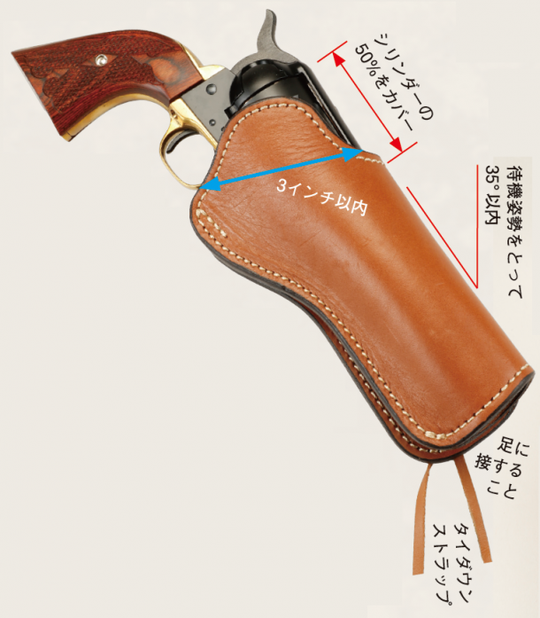 ● ホルスターはウエスタン・スタイルで、上部と底は開口していなくてはならない。