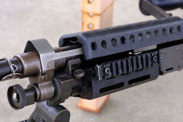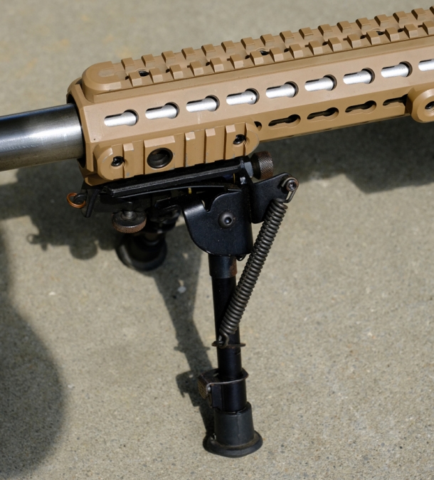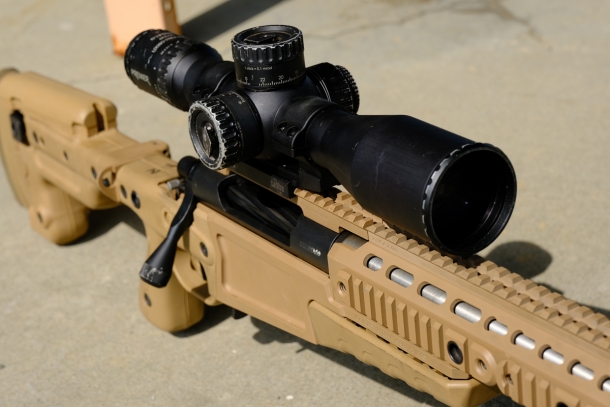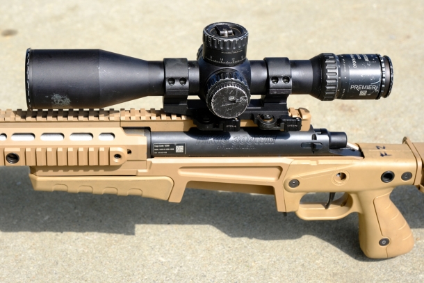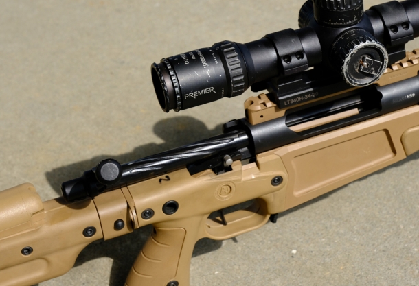 Mk13 MOD7のハンドガードにはキーモッドスロットを備え、ボルト上部のトップレールはレシーバー後部まで延長。スコープに加えバイポッドやレーザーレンジファインダーなど幅広いオプション装備に対応している。