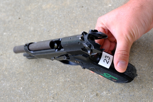 ベレッタ 92シリーズは、銃身を傾けて閉鎖・開放を行なうティルトバレル式のショートリコイル(現在多くの拳銃が採用)ではなく、ロッキングブロックという銃身とスライドを固定する閂(かんぬき)のような部品を用いて、銃身を前後させて閉鎖・開放を行なうプロップアップ式のショートリコイルを採用している。この方式は部品点数が増えるため整備性が悪化するが、銃身が揺動しないため射撃精度に優れるという長所を備えていた。スライド上部が大きくくり抜かれて銃身が露出した特徴的な外見で、ビジュアル的な評価も高い。