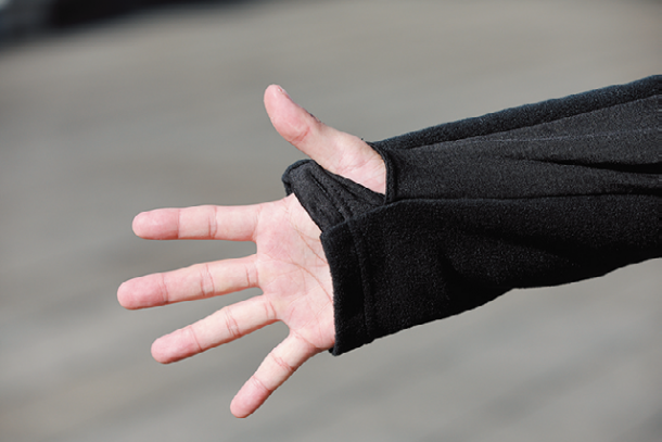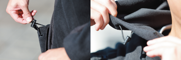 ボディやスリーブにマイクロフリース素材、ボディ側面にストレッチグリッドフリース素材を使用したアクティブスタイルのフーディー。帽子を被ったままでも覆える大きめのフードが備え付けられているため、小雨であっても対応できる。お尻の部分まで覆うダックテイルデザインとなっており腰回りの防風・防寒性に優れている。