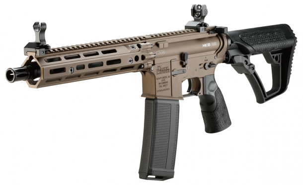 ボディカラーはブラック、ダークアース、ツートーンの3種類(PDWのみブラック)。内部にはETU(電子トリガーシステム)が内蔵され、見た目のリアルさだけでなく電動ガンとしての実力も申し分ない。M4カービンの電動ガンが欲しくて迷ったらこのモデルがお薦めだ。