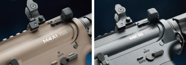 バリエーションは全部で3タイプ。DD M4A1 RISⅢは14.5インチバレル、DD Mk18 RISⅢはその名の通りCQBRレングスのバレルにRISⅢ M-LOKハンドガードを装着。DDM4 PDWは6インチバレルに大型マズルブレーキにPDWストックが装着されている。いずれもアッパー/ロアレシーバーには実銃同様の刻印が施されており、ダストカバー、アンビチャージングハンドルも再現。さらにグリップやストック(M4A1とMk18)もダニエルディフェンス仕様となっている。