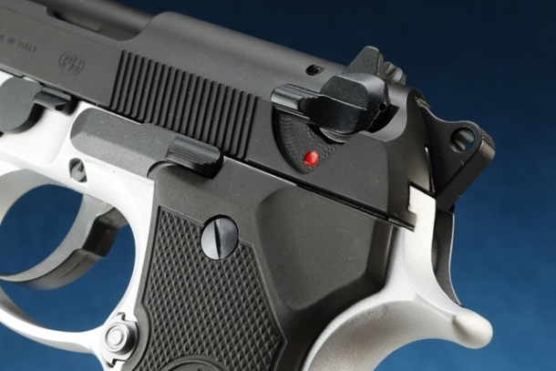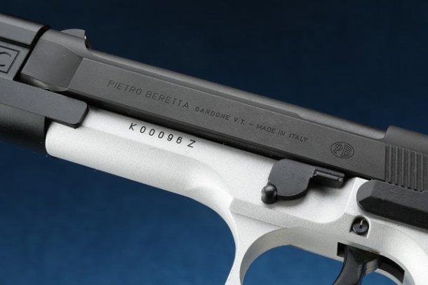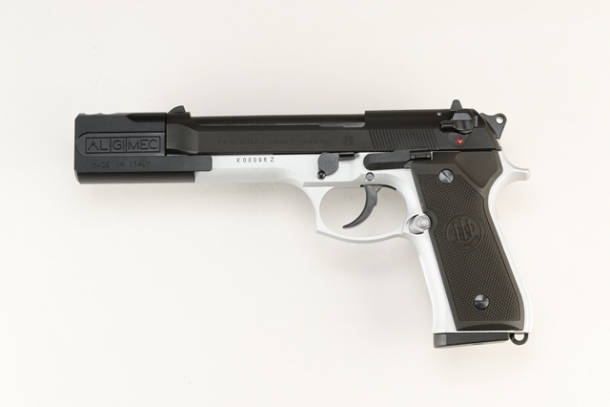 ツートンモデルは初期型の92Fをベースに、スライドはF刻印とハンマーピンが収まる溝がないF型、フレーム側は1988年製のFS刻印&シリアルナンバー「K00096Z」のFS型が組み合わされている。コンペンセイターにはサイレンサー装着用ネジは切られておらず、92F仕様のスライドにあわせた旧型ハンマーピン、シルバーカラーのマガジンキャッチを装着。フレームは実物のように表面のアルマイトを剥がしたアルミの地肌をセラコート塗装によって再現している。