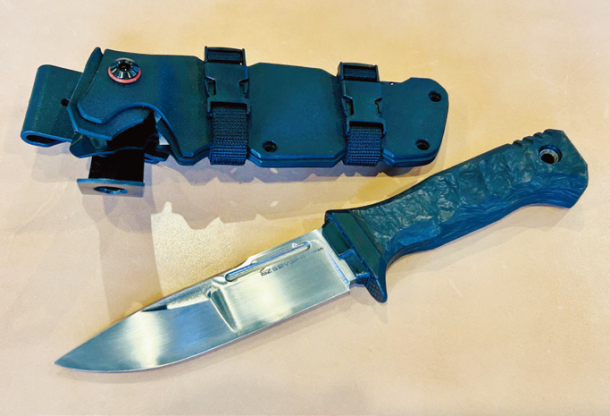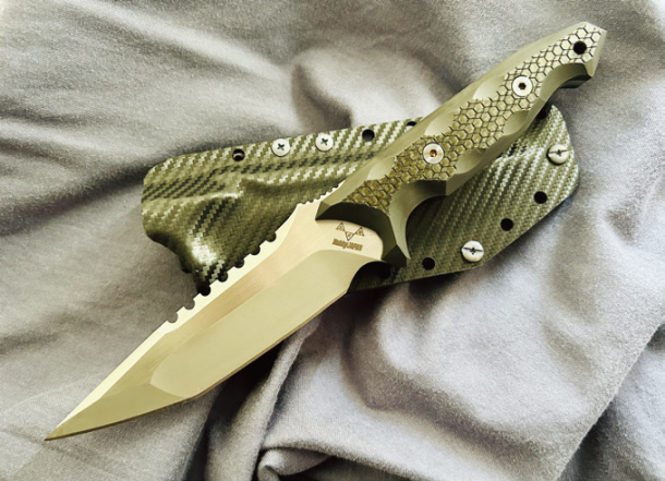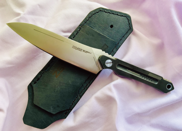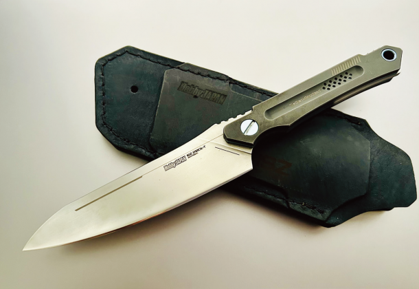 「丈夫で使いやすいナイフを」という明確なコンセプトを制作当初から保つ。今回のモデルは「包丁」をモチーフとした汎用性の高いアウトドアナイフ。ハンドル材はチタン!!シースも工夫を凝らした「持つのも使うのも楽しい」モデルに。