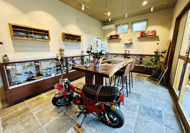 岐阜県瑞浪市にある店舗には、ファン垂涎のナイフがずらりと並ぶ。石崎祐也さんのISZ Knives、萩野力さんのAsurah Knivesといった気鋭作家に、原幸治さん、山本徹さん、中山英俊さん、原龍一さんといった人気作家、スパルタンブレードをはじめとする海外ブランドにモキナイフをはじめとするファクトリーナイフ、さらにはブラックボアをはじめとしたオリジナルブランド……。