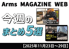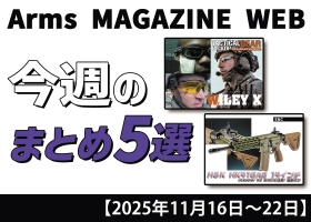 NEWS ニュース:その他 その他 2025/12/06 今週の注目ニュースをイッキ読み! トイガン、タクティカルギアなど新製品情報満載【2025年11月30日~12月6日】 Arms MAGAZINE WEBにて今週投稿された記事5選をご紹介! 2025年11月30日~12月6日の1週間で投稿された記事の中からアームズマガジンウェブ編集部が注目した5つをご紹介。今週は「月… (続きを読む) 月刊アームズマガジン その他 2025/11/29 今週の注目ニュースをイッキ読み! トイガン、タクティカルギアなど新製品情報満載【2025年11月23日~29日】 Arms MAGAZINE WEBにて今週投稿された記事5選をご紹介! 2025年11月23日~11月29日の1週間で投稿された記事の中からアームズマガジンウェブ編集部が注目した5つをご紹介。今週は1… (続きを読む) 月刊アームズマガジン その他 2025/11/29 タニオ・コバ 小林太三氏デザインのアパレルが販売中! みんなで、小林太三を着よう。 ――レジェンドのスピリットを、日常にまとう。 モデルガン界の礎を築いた“タニオ・コバ”の小林太三氏。その存在を象徴するイラストを落とし込んだアパレルラインが誕生した。Tシ… (続きを読む) 月刊アームズマガジン その他 2025/11/26 「月刊アームズマガジン2026年1月号」11月27日(木)発売 巻頭特集やトイガン新製品の掲載情報をご紹介!! 月刊アームズマガジン 2026年1月号 11月27日(木)発売! HEADLINE NEWS 電動ガン「EVOLT」シリーズ爆誕! 東京マルイが放つ電動ガンのあらたなカタチ 東京マルイ フェスティバル… (続きを読む) 月刊アームズマガジン その他 2025/11/25 昭和大好きかるた 時代を超えた普遍の良き「何か」を振り返る 第41回「る」 時代を超えた普遍の良き「何か」を振り返る 第41回 る ルーザー 令和となってはや幾年。平成生まれの人たちが社会の中枢を担い出すようになった今、「昭和」はもはや教科書の中で語られる歴史上の時代となりつ… (続きを読む) 月刊アームズマガジン その他 2025/11/22 今週の注目ニュースをイッキ読み! トイガン、タクティカルギアなど新製品情報満載【2025年11月16日~22日】 Arms MAGAZINE WEBにて今週投稿された記事5選をご紹介! 2025年11月16日~22日の1週間で投稿された記事の中からアームズマガジンウェブ編集部が注目した5つをご紹介。今週は「月刊ア… (続きを読む) 月刊アームズマガジン その他 2025/11/17 【ナイフダイジェスト WEB版】19 NEWS:『ナイフカタログ2026』11月17日 発売!! ファクトリーモデルを中心に、いま手に入るナイフが大集合した 『ナイフカタログ2026』 が11月17日に発売となった!! ナイフカタログ2026 定価:2,970円(本体2,700円+税10%) 2年… (続きを読む) 月刊アームズマガジン その他 2025/11/15 今週の注目ニュースをイッキ読み! トイガン、タクティカルギアなど新製品情報満載【2025年11月9日~15日】 Arms MAGAZINE WEBにて今週投稿された記事5選をご紹介! 2025年11月9日~15日の1週間で投稿された記事の中からアームズマガジンウェブ編集部が注目した5つをご紹介。今週は「月刊アー… (続きを読む) 月刊アームズマガジン その他 2025/11/11 昭和大好きかるた 時代を超えた普遍の良き「何か」を振り返る 第40回「り」 時代を超えた普遍の良き「何か」を振り返る 第40回 り 理科 令和となってはや幾年。平成生まれの人たちが社会の中枢を担い出すようになった今、「昭和」はもはや教科書の中で語られる歴史上の時代となりつつあ… (続きを読む) 月刊アームズマガジン その他 2025/11/09 気鋭作家 × HOBBY JAPAN コラボレーションナイフ企画、進行中!!【ナイフダイジェスト・アームズマガジン版】 人類最古の道具とも言われる刃物。その中でも、実用性と収集性が並び立つアイテムである「ナイフ」にフォーカスして、最新情報をお届けしよう TOPIC 気鋭作家 × HOBBY JAPAN コラボレーション… (続きを読む) 月刊アームズマガジン その他 2025/11/08 今週の注目ニュースをイッキ読み! トイガン、タクティカルギアなど新製品情報満載【2025年11月2日~8日】 Arms MAGAZINE WEBにて今週投稿された記事5選をご紹介! 2025年11月2日~8日の1週間で投稿された記事の中からアームズマガジンウェブ編集部が注目した5つをご紹介。今週は「月刊アーム… (続きを読む) 月刊アームズマガジン その他 2025/11/07 画期的な充電式の多機能アナログ時計「MTM WATCH SILENCER」 ミリタリーウォッチといえば高性能で無骨なイメージを持たれる方が多いはずだ。ミリタリーウォッチは過酷な条件下でも正確に時を刻むことが求められるため、防水性や視認性に優れる盤面、信頼性のあるムーブメントを… (続きを読む) 月刊アームズマガジン その他 2025/11/01 今週の注目ニュースをイッキ読み! トイガン、タクティカルギアなど新製品情報満載【2025年10月26日~11月1日】 Arms MAGAZINE WEBにて今週投稿された記事5選をご紹介! 2025年10月26日~11月1日の1週間で投稿された記事の中からアームズマガジンウェブ編集部が注目した5つをご紹介。今週は10… (続きを読む) 月刊アームズマガジン その他 2025/10/29 アメリカ海兵隊はなぜ大変革を進めるのか? 「イラストでまなぶ!用兵思想入門 現代